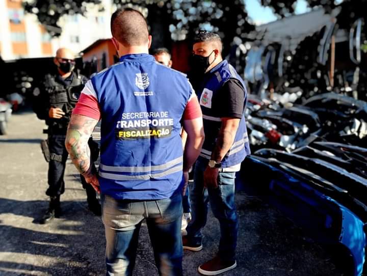 Flagrante de descarte de sucata – Motorista e empresa foram multados após despejo irregular de sucatas de automóveis no bairro Estrela do Norte. A ação foi realizada de forma integrada, nesta sexta (22), com mobilização das secretarias de Meio Ambiente, Transportes, subsecretarias de Fiscalização de Posturas e de Limpeza Urbana, além da Ronda Ostensiva Municipal.