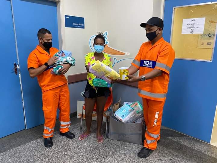 Os profissionais Márcio e Marcelo puderam rever o lindo bebê Kelvim Lucas, saudável, de quase três semanas. E claro, fizeram questão de presenteá-los com fraldas descartáveis, roupas e mantimentos arrecadados através de uma campanha interna na Comlurb. 👏 A mamãe Tiffany Maria passa bem e os dois receberam alta no Hospital Miguel Couto nesta tarde.
