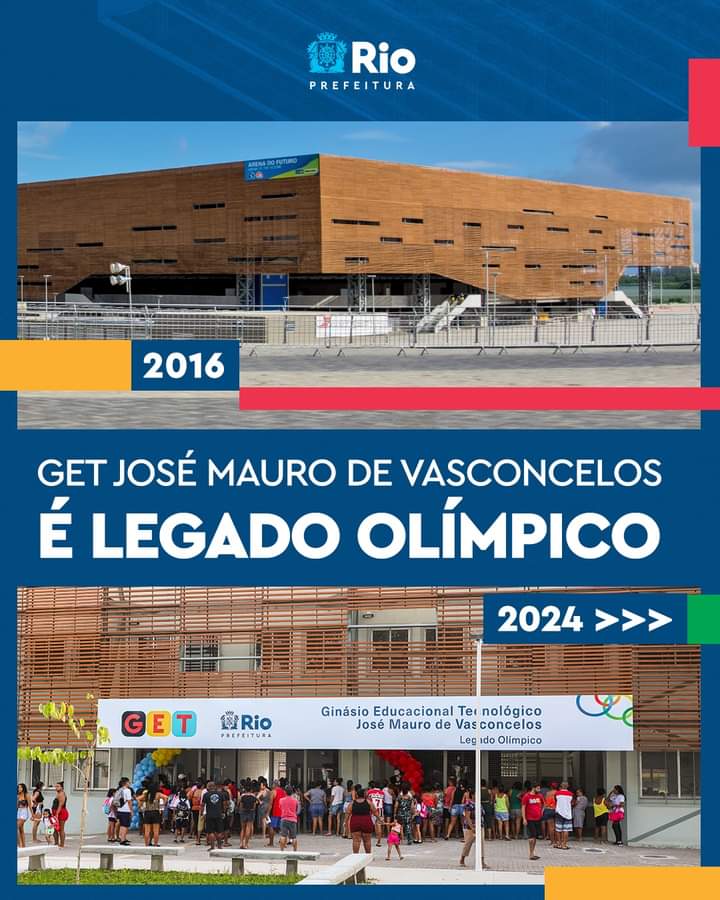 O GET José Mauro de Vasconcelos, em Bangu, é mais uma escola construída com a estrutura da Arena do Futuro, aquela que recebeu as competições de handebol nos Jogos Rio 2016. Outras duas serão inauguradas em breve e sabe o que todas têm em comum? Nenhuma delas existiria se não fossem as Olimpíadas e Paralimpíadas de 2016.