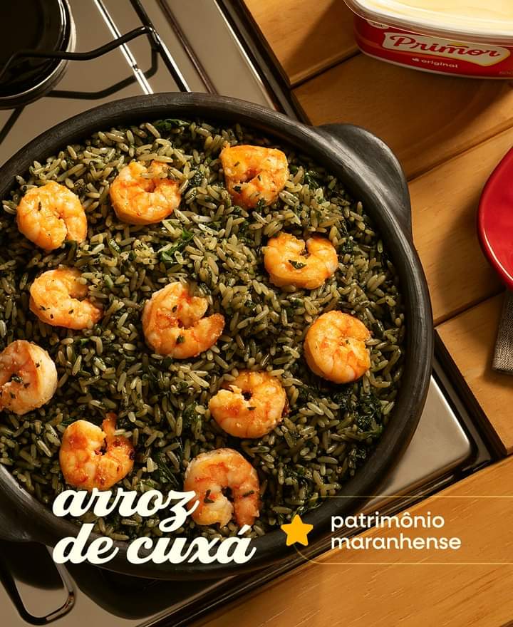 O arroz de cuxá é um prato típico do Maranhão, sua origem remonta ao período colonial brasileiro, quando os portugueses chegaram ao Maranhão em busca de novas terras e riquezas. Na época, os escravos africanos que trabalhavam nas plantações de arroz eram responsáveis por criar receitas e misturar sabores. Foi assim que surgiu o arroz de cuxá, um prato que mistura influências indígenas, africanas e portuguesas. Que leva em seu preparo arroz cozido, camarão seco, pimenta-de-cheiro, alho, cebola, pimentões, vinagreira, gergelim torrado e no nosso vai um Incrível pesto de vinagreira que foi criado exclusivamente para acompanhar essa deliciosa iguaria.