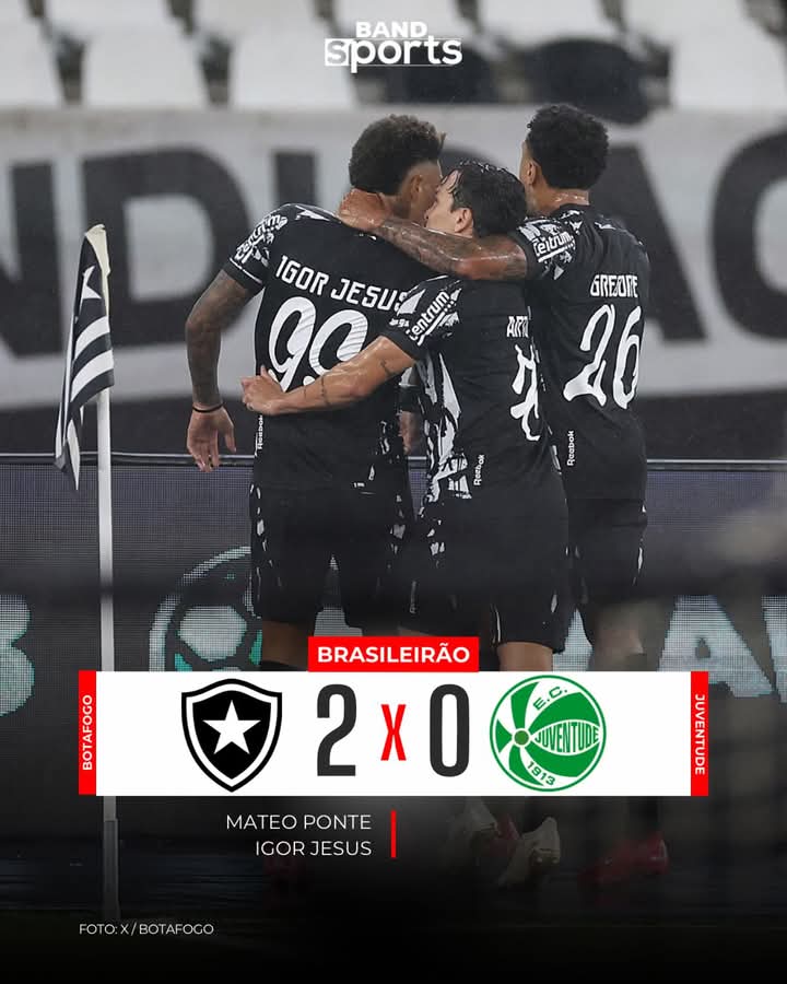 O Botafogo venceu o Juventude por 2 a 0 com gols de Igor Jesus e Mateo Ponte no Estádio Nilton Santos.