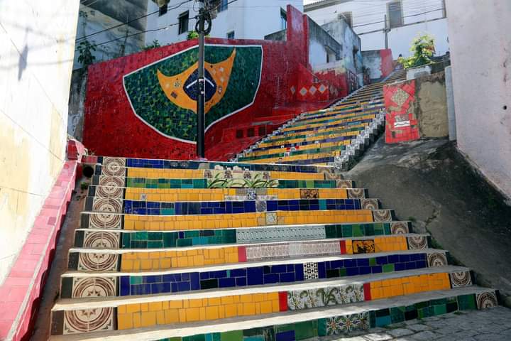 A Escadaria Selarón é mais uma obra de arte a céu aberto na nossa cidade. Com 215 degraus, ela é formada por mais de 2 mil azulejos de várias partes do Brasil e do mundo.