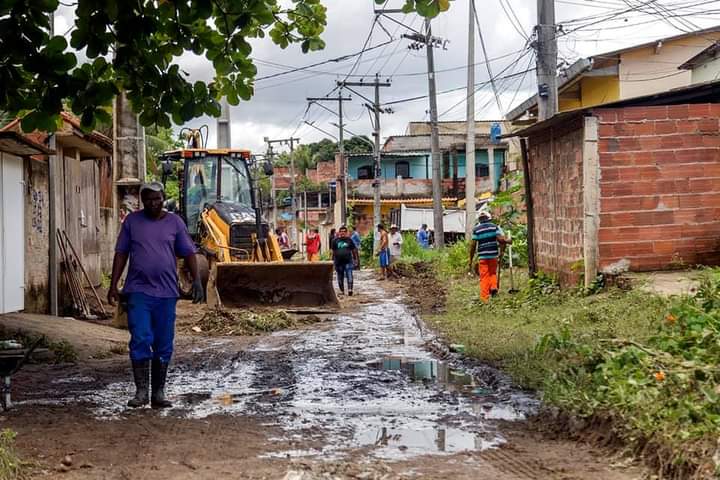 Logo no início da manhã desta quarta (3), cerca de 60 homens do 1º e 2º Departamento de Conservação e Obras (DCO) – com auxílio de sete caminhões, duas retroescavadeiras e um caminhão vac-all – trabalharam nas ruas que ficaram alagadas no bairro Jardim Catarina.