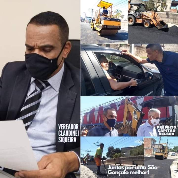 O Vereador Claudinei Siqueira vem diariamente/ incansavelmente seja no Plenário da Câmara Municipal de Vereadores através de indicações legislativas, projetos de leis, solicitações ou pronunciamentos solicitando melhorias ao Prefeito Capitão Nelson para o município de São Gonçalo.