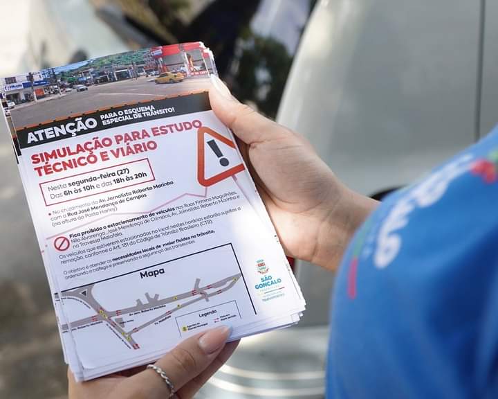 Mudança no trânsito – As equipes da Prefeitura percorreram, nesta quinta (23), a Avenida Jornalista Roberto Marinho e a Avenida José Mendonça de Campos, próximo ao Posto Halley, no Colubandê, informando aos moradores e comerciantes sobre a primeira simulação para estudo técnico e viário que será realizada no trânsito na próxima segunda (27).