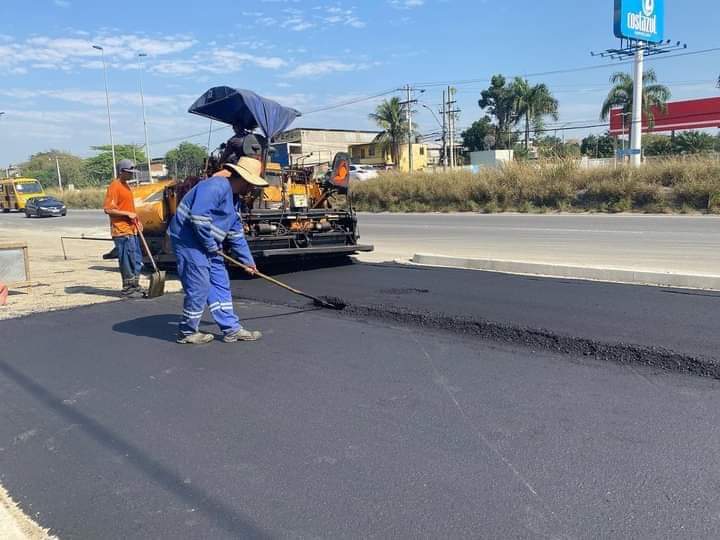Após obras de drenagem, o novo asfalto já está sendo aplicado na via.