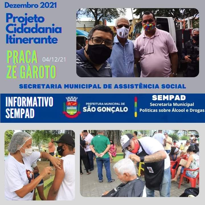 Mas não é só de lazer que é feito o nosso sábado, teve serviço social também. A Secretaria de Assistência Social realizou mais uma edição do projeto “Cidadania Itinerante”, nesta manhã, na Praça Estephania de Carvalho, no Zé Garoto.