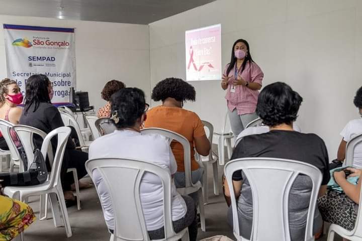 A pandemia causou inúmeros danos à saúde física e mental das pessoas. Pesquisas apontam que a epidemia foi um dos fatores que provocaram o aumento da violência doméstica contra as mulheres no país, além do uso descontrolado e progressivo de bebidas alcoólicas nos lares brasileiros no ano de 2020. Pensando em ações para o combate à violência e no auxílio a dependentes de bebidas, a Secretaria de Políticas sobre Álcool e Drogas de São Gonçalo, com apoio do Projeto Lilás, realizou uma roda de conversa, nomeada “Entre elas”, com moradores da localidade do bairro Venda da Cruz, na manhã desta quarta-feira (6).