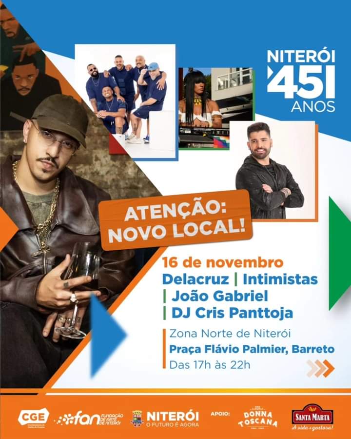As comemorações começarão na Zona Norte de Niterói, em novo local, na Praça Flávio Palmier, no Barreto, no dia 16 de novembro, das 17h às 22h. A programação contará com artistas de destaque da música brasileira e talentos locais, como Delacruz, João Gabriel, Intimistas e DJ Cris Pantoja.