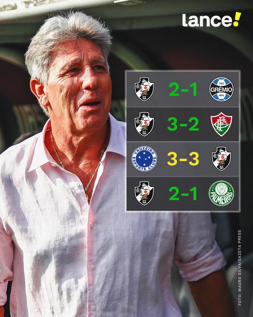 Com gols de Cuiabano e David, o Cruzmaltino superou o Grêmio em São Januário! São quatro jogos, três vitórias e um empate desde a chegada do novo comandante!
